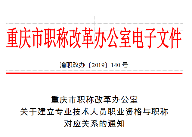 (一)按照《重慶市職稱改革辦公室關(guān)于建立專業(yè)技術(shù)人員職業(yè)資格與職稱對應(yīng)關(guān)系的通知》(渝職改辦〔2019〕140 號)(附件 5)“在對應(yīng)關(guān)系范圍內(nèi),專業(yè)技術(shù)人員取得職業(yè)資格即可認(rèn)定其具備相應(yīng)系列和層級的職稱,并可作為申報(bào)高一級職稱的條件”精神,專業(yè)技術(shù)人員取得文件所列對應(yīng)職業(yè)資格(無需換發(fā)職稱證書)直接申報(bào)相應(yīng)系列(專業(yè))高一級職稱。