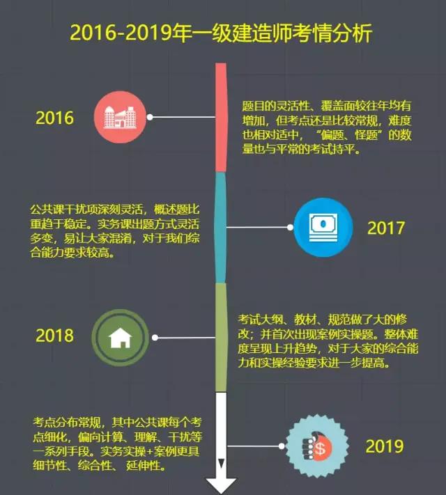 其次我們來了解一下,近年來一建考情的變化,這對于考生制定更具針對性的備考計劃,具有很大幫助: