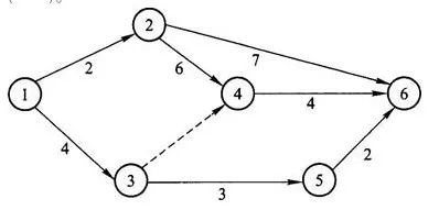 3、關(guān)鍵線路:(1)→(2)→(3)→(7)→(9)→(10)。工期=6+5+5+4+3=23天。