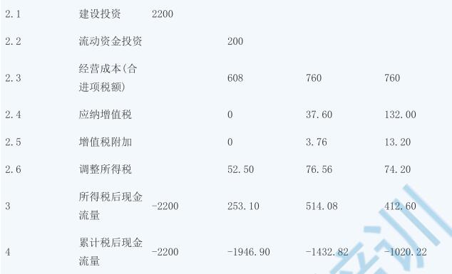 2.若該項目的建設(shè)投資為 2200 萬元(包含可抵扣進項稅 200 萬元),建設(shè)投資在建設(shè)期均衡投入。