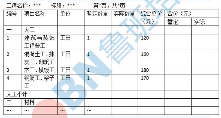 (4)招標(biāo)工程量清單中給出的“計日工表(局部)”,見表 3.1.