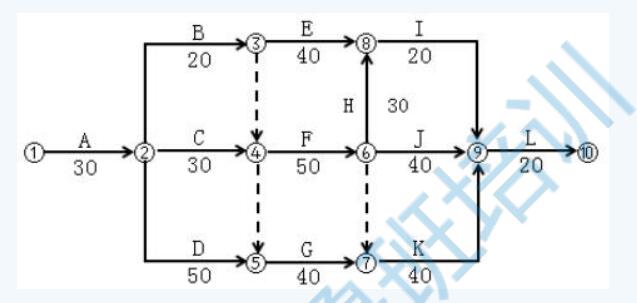 某工程項目,發(fā)包人和承包人按工程量凊單計價方式和《建設(shè)工程施工合同(示范文本)》(GF-2017-0201)簽訂了施工合同,合同工期 180 天。合同約定:措施費按分部分項工程費的25%計取;管理費和利潤為人材機費用之和的 16%,規(guī)費和稅金為人材機費用、管理費與利潤之和的 13%。開工前,承包人編制并經(jīng)項目監(jiān)理機構(gòu)批準(zhǔn)的施工網(wǎng)絡(luò)進度計劃如圖 4-1 所示: