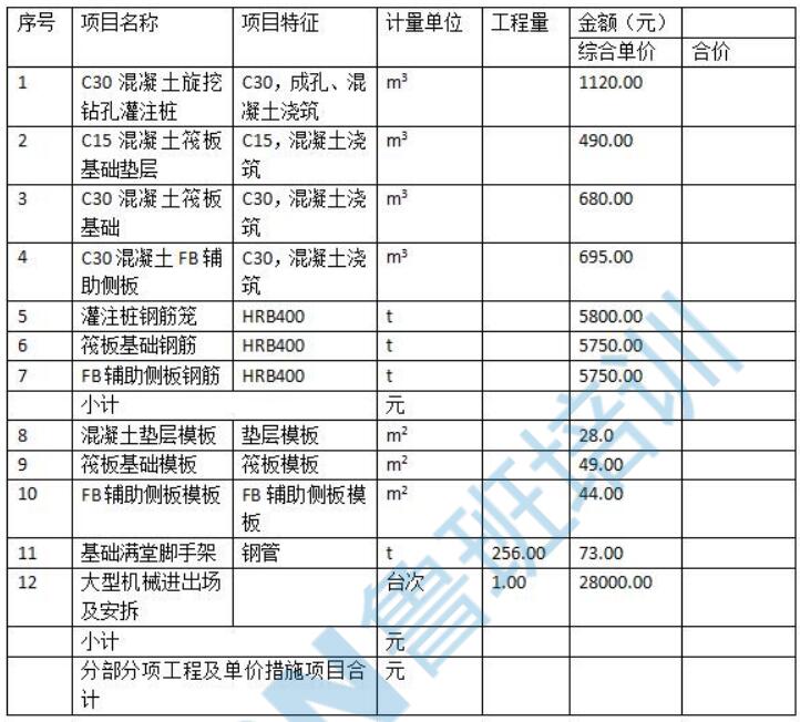 2.根據(jù)問題 1 的計算結(jié)果,及答題卡表 6.2 中給定的信息,按照《建設(shè)工程工程量清單計價表規(guī)范》(GB50584-2013)的要求,在答題卡表 6.2“分部分項工程和單價措施項目清單與計價表”中,編制該煙囪鋼筋混凝土基礎(chǔ)分部分項工程和單價措施項目凊單與計價表。