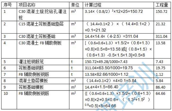 1.根據(jù)該多管式(鋼內(nèi)筒)煙囪基礎(chǔ)施工圖紙、技術(shù)參數(shù)及參考資料,及答題卡表 6.1中給定的信息,按《房屋建筑與裝飾工程工程量計算規(guī)范》(GB50584-2013)的計算規(guī)則,在答題卡表 6.1“工程量計算表”中,列示計算該煙囪基礎(chǔ)分部分項工程量。(筏板上 8 塊 FB輔助側(cè)板的斜面在混凝土澆搗時必須安裝模板)。