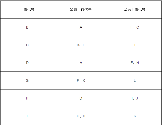 1、按下表格計劃列出各項工作的緊前工作和緊后工作
