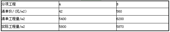 萬(wàn)元,材料費(fèi)504.4萬(wàn)元,機(jī)械使用費(fèi)l55.3萬(wàn)元,施工措施費(fèi)l04.2萬(wàn)元,施工管理費(fèi)46.2萬(wàn)元,稅金30.6萬(wàn)元),然后將成本預(yù)測(cè)結(jié)果下達(dá)給項(xiàng)目經(jīng)理部進(jìn)行具體施工成本管理??偝邪┕ず贤且怨こ塘壳鍐螢榛A(chǔ)的固定單位合同。合同約定當(dāng)A分項(xiàng)工程、B分項(xiàng)工程實(shí)際工程量與清單工程量差異幅度在±5%以?xún)?nèi)的按清單價(jià)結(jié)算,超出幅度大于5%時(shí)