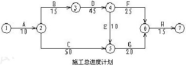 2.指出施工總進度計劃圖的關鍵線路(用工作法表示)和總工期。