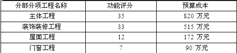 18.對某個項(xiàng)目的各項(xiàng)分部工程進(jìn)行功能評分如下,計算得出相應(yīng)各項(xiàng)的預(yù)算成本:從上表中數(shù)值看出,( )成本比重偏高,應(yīng)做重點(diǎn)分析,尋求降低成本的措施。