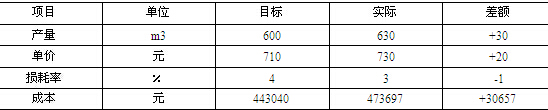 事件二:施工過程中,項目部對混凝土的成本進行了分析,發(fā)現(xiàn)了成本超標(biāo)。