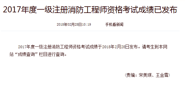 2017年度一級(jí)注冊(cè)消防工程師成績(jī)已發(fā)布
