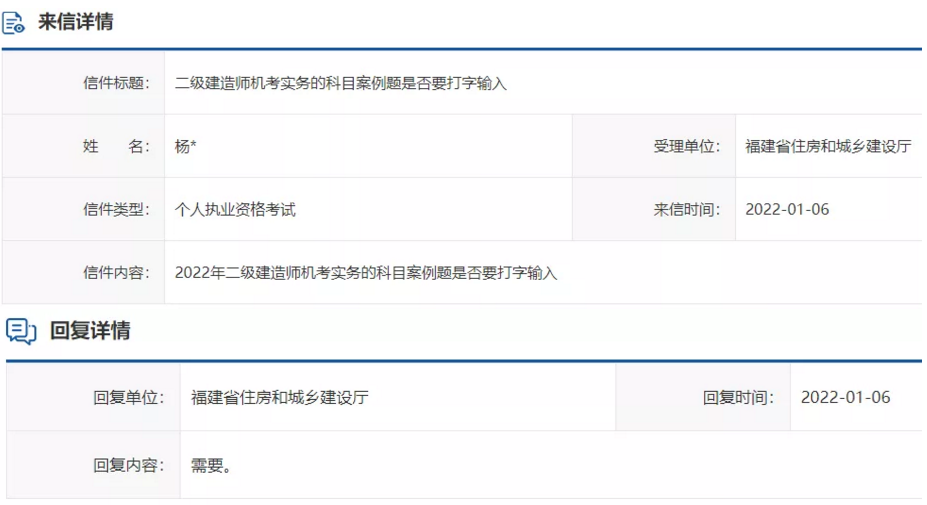 關(guān)于“2022年二建機考實務(wù)的科目案例題是否要打字輸入?”這個考生比較關(guān)心的問題,官方也給予了答復(fù)——需要,所以,對2022年的二建考生來說,面臨的另一個挑戰(zhàn)便是提高打字速度。