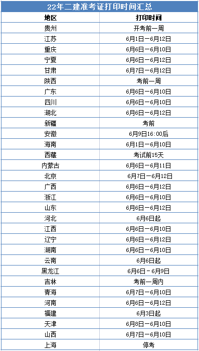 2022年二建準(zhǔn)考證打印時間匯總!