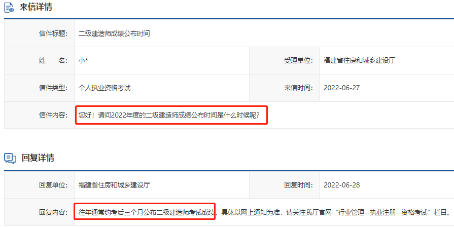 近日,又有2省針對2022二建考試成績公布時間作出了回復(fù),具體如下: