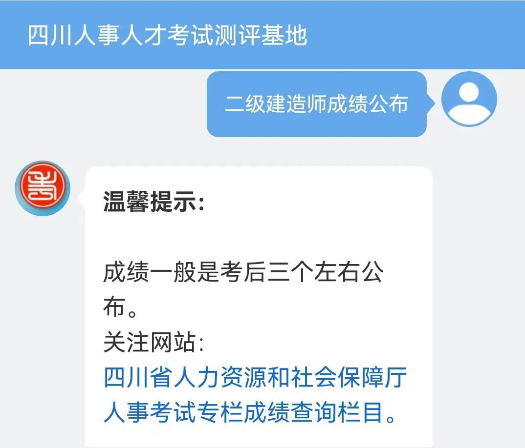 福建省住房和城鄉(xiāng)建設(shè)廳:往年通常約考后三個月公布二級建造師考試成績,具體以網(wǎng)上通知為準,請關(guān)注我廳官網(wǎng)“行業(yè)管理--執(zhí)業(yè)注冊--資格考試”欄目。