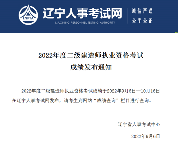 遼寧:2022年遼寧二級(jí)建造師考試成績(jī)公布!