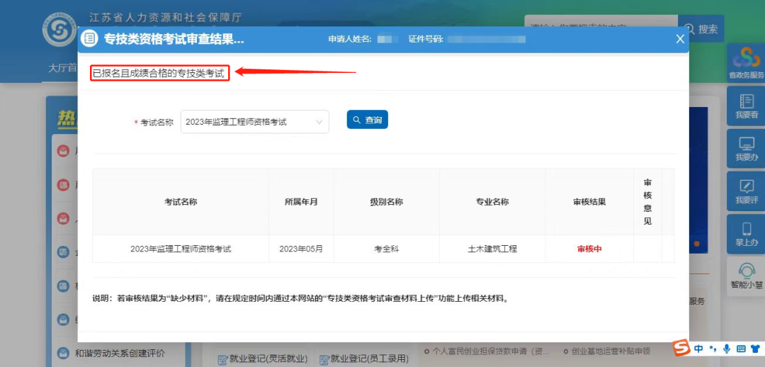 查詢結(jié)果頁(yè)顯示“已報(bào)名且成績(jī)合格的專(zhuān)技類(lèi)考試”。如果你可以選擇2023年監(jiān)理工程師資格考試并顯示“審核中”,基本可以確定你今年是全科合格,已經(jīng)進(jìn)入到審核名單里。