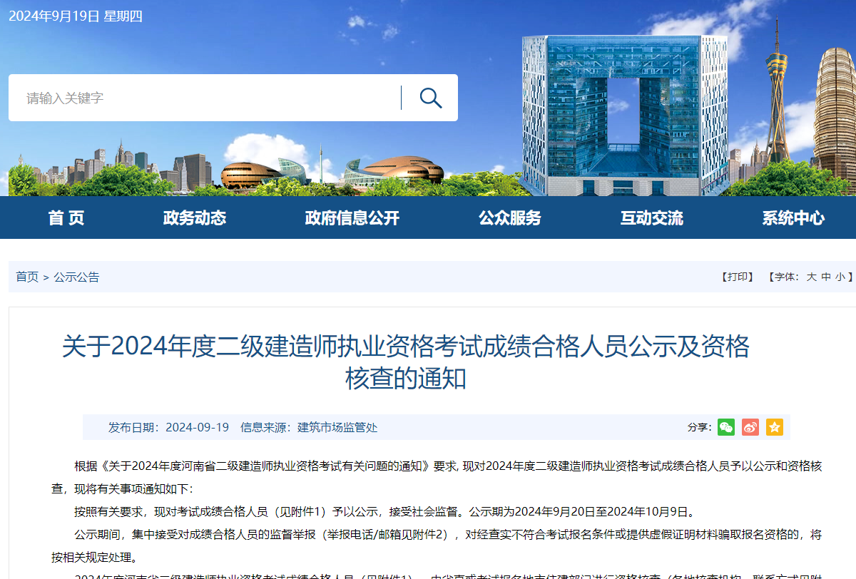 根據(jù)《關(guān)于2024年度河南省二級建造師執(zhí)業(yè)資格考試有關(guān)問題的通知》要求, 現(xiàn)對2024年度二級建造師執(zhí)業(yè)資格考試成績合格人員予以公示和資格核查,現(xiàn)將有關(guān)事項通知如下: