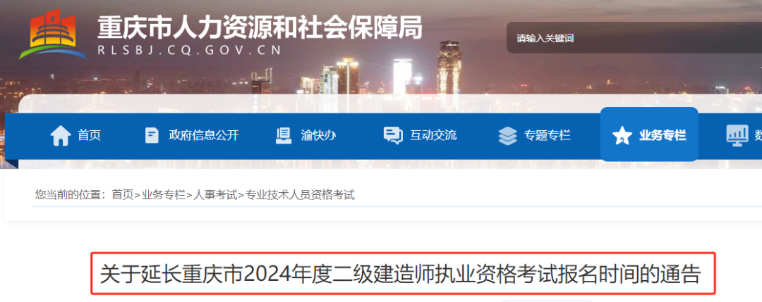 關(guān)于延長重慶市2024年度二級(jí)建造師執(zhí)業(yè)資格考試報(bào)名時(shí)間的通告