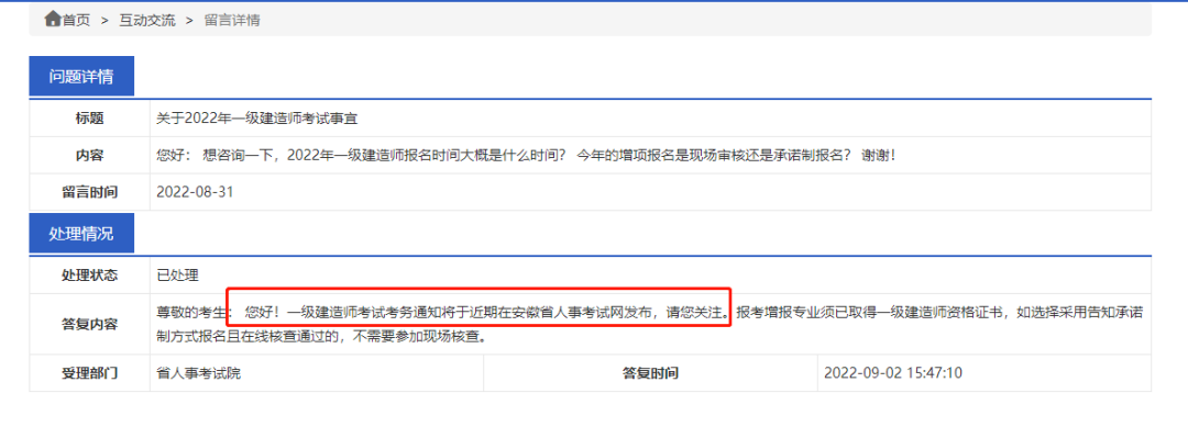 【問】您好:想咨詢一下,2022年一級建造師報(bào)名時(shí)間大概是什么時(shí)間?今年的增項(xiàng)報(bào)名是現(xiàn)場審核還是承諾制報(bào)名?謝謝!