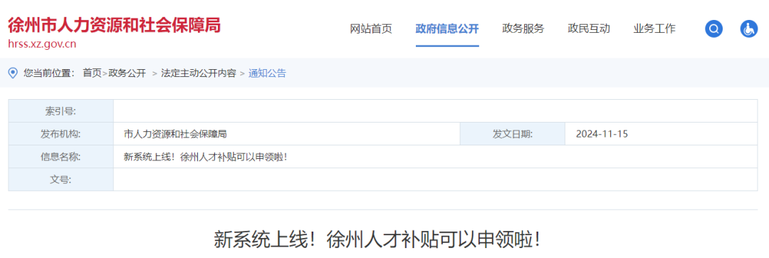 近日,徐州市人力資源和社會(huì)保障局發(fā)布通知:正式官宣新系統(tǒng)上線,徐州人才補(bǔ)貼可以申領(lǐng)了。