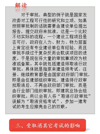 當然,國家取消這類考試也是為了改革、釋放創(chuàng)業(yè)創(chuàng)新活力。于是很多從事建筑的往往擔心政府將手腕伸向建造師考試,再加上周圍人不斷討論與煽動,不斷有考試在陸續(xù)被取消,建造師也就順其自然地成了人們討論的對象。