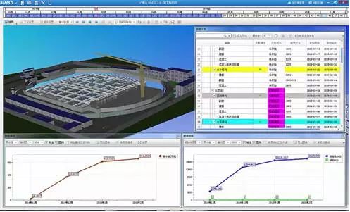 施工管理人員結(jié)合BIM在模型量化的基礎上,將三維模型與施工進度計劃連接,將空間信息與時間信息反映到模型中,實現(xiàn)對施工進度計劃的管控。管理人員可以通過劃分已經(jīng)完成工程量,輸出施工進度,進行實際施工進度與計劃施工進度的對比;可以直接對現(xiàn)場進度情況進行分析診斷,更直觀、可視、清晰,改變了傳統(tǒng)的施工進度管理模式,確保了進度計劃合理和可行。