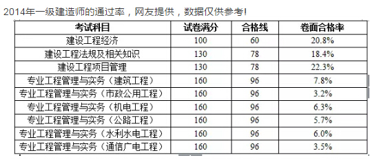 一級建造師通過率分析:
