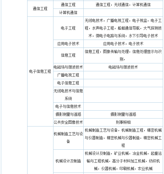 一級(jí)建造師工程類或工程經(jīng)濟(jì)類專業(yè)對(duì)照表