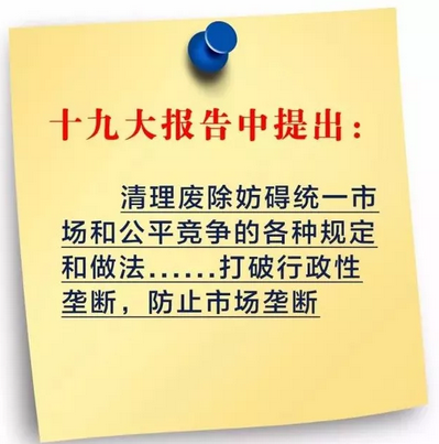 黃勇評價說,“十九大報告強調(diào)使市場在資源配置中起決定性作用,更好發(fā)揮政府作用,報告還明確要求清理廢除妨礙統(tǒng)一市場和公平競爭的各種規(guī)定和做法,打破行政壟斷,防止市場壟斷。”