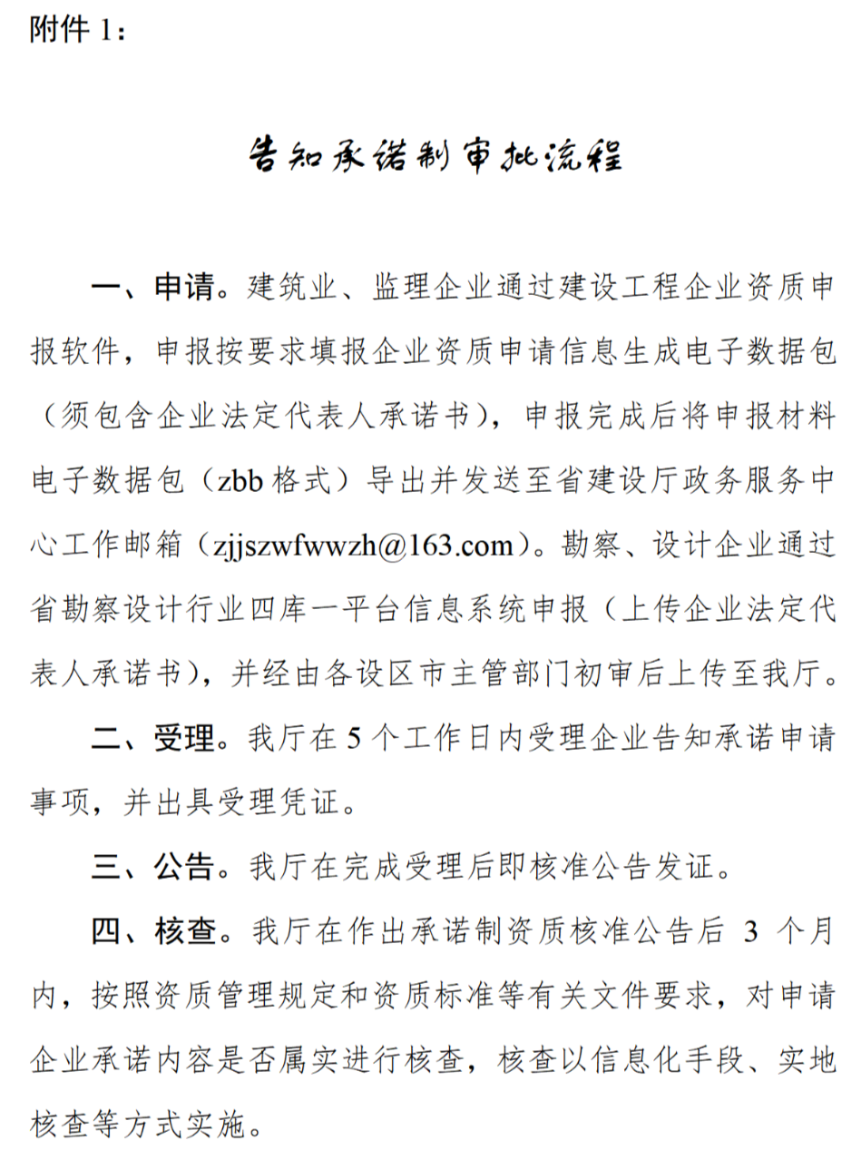 一、2022年8月1日起,住房城鄉(xiāng)建設(shè)部審批權(quán)限下放試點的工程勘察、設(shè)計、監(jiān)理甲級資質(zhì)和施工總承包、專業(yè)承包一級資質(zhì)全面推行告知承諾制審批(重新核定事項除外)。申報相關(guān)要求參照《關(guān)于印發(fā)<浙江省深化住房城鄉(xiāng)建設(shè)領(lǐng)域“證照分離”改革全覆蓋試點工作實施方案>的通知》(浙建〔2020〕11號)執(zhí)行,審批流程和企業(yè)法定代表人承諾書詳見附件1、2。