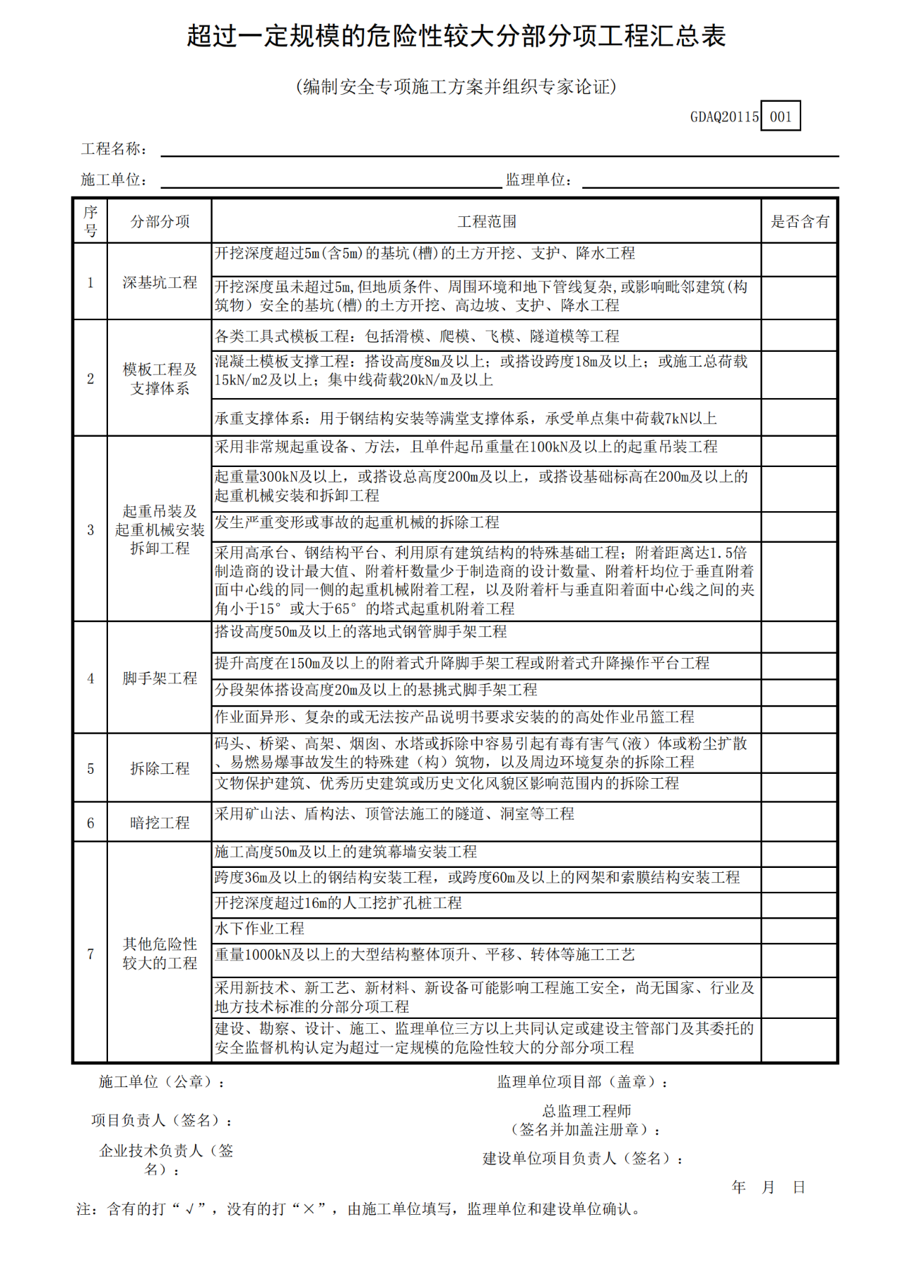 2.超過(guò)一定規(guī)模的危險(xiǎn)性較大分部分項(xiàng)工程匯總表