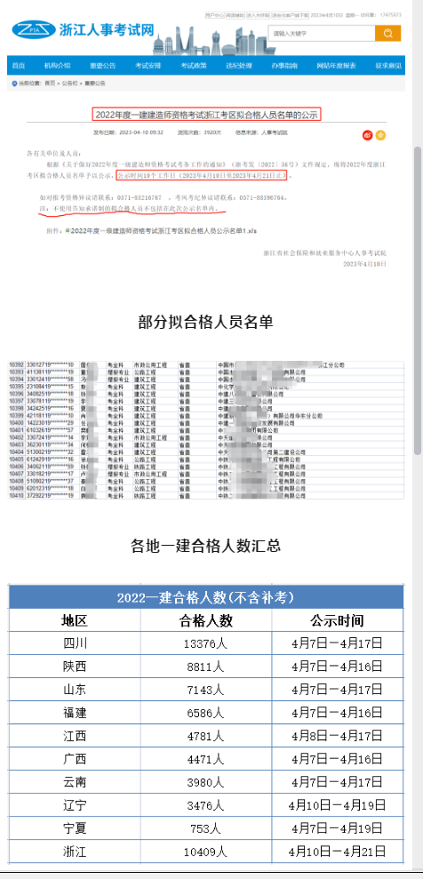 今日新增!浙江省2022年一級建造師合格人員剛剛公示,10409人擬合格,除四川外,又一個超萬人合格的地方。